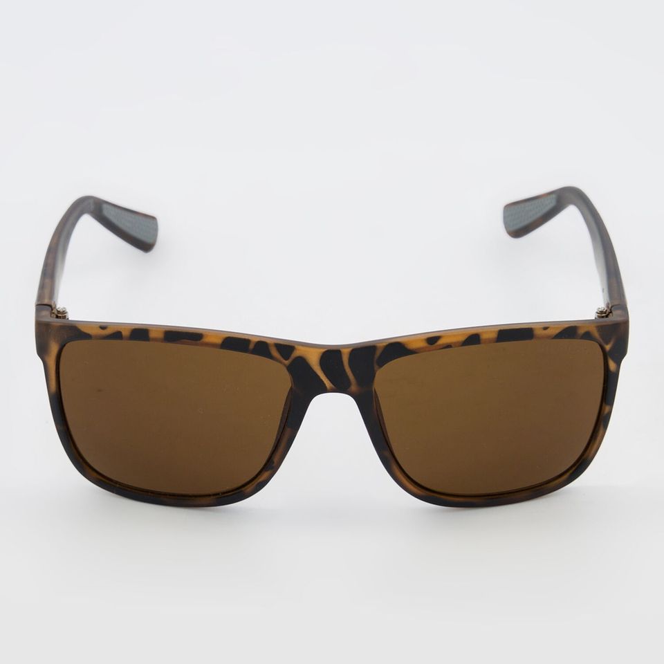 • Stylish square-shaped sunglasses with brown frames.